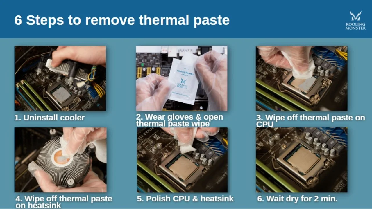 Rimuovi la pasta termica dalla tua CPU/GPU, così come dal dissipatore con una salviettina di pulizia.