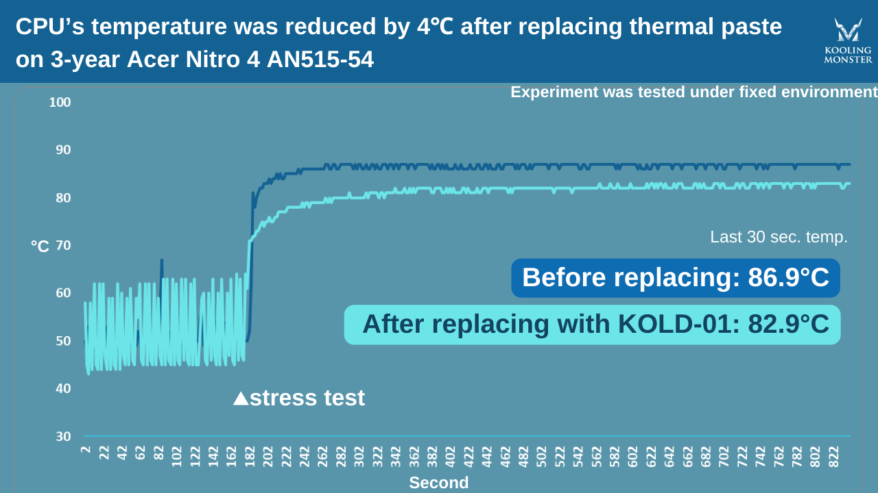 Abbiamo messo alla prova questa teoria applicando uno strato fresco di pasta termica Kooling Monster KOLD-01 su CPU e GPU del nostro laptop.