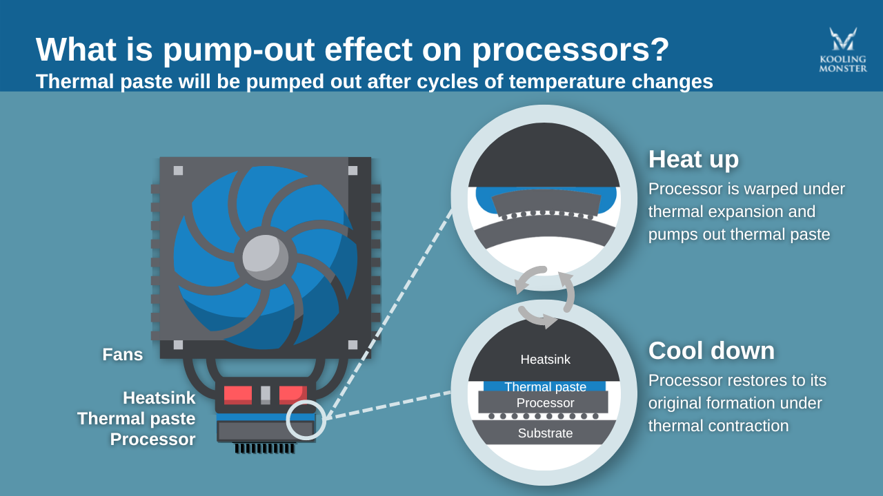 Quando scegli la pasta termica per la GPU, è importante considerare una pasta con una formulazione speciale resistente all'effetto pump-out. Un'opzione da valutare è Kooling Monster KOLD-01, progettata con un design reologico unico che offre una risposta dinamica alla pressione.