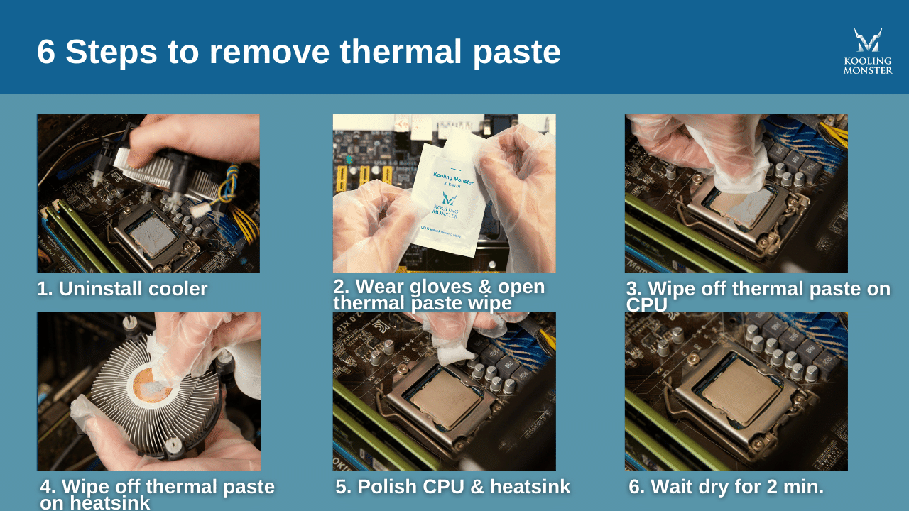 Devi usarne solo quanto basta per riempire gli spazi tra CPU e dissipatore — né più, né meno (Scopri di più su Cosa succede se metti troppa pasta termica sulla CPU?). Quindi, se ne hai messa più del necessario, devi rimuoverla e rimetterne una nuova. Per essere sicuro di pulire ogni ultimo residuo di pasta termica dal computer, consigliamo il detergente KLEAN-01. Ti risparmia la seccatura di cercare detergente e tessuto giusti.