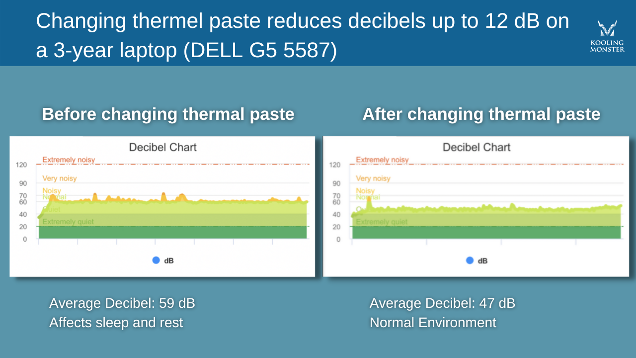 Come dimostrato dal caso studio di Kooling Monster, sostituire una pasta termica degradata con una nuova può diminuire enormemente il rumore della ventola. Questo è reso possibile dalle migliorate prestazioni termiche del PC con la nuova pasta termica.